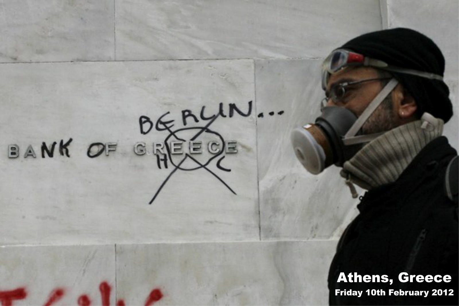 Picture: Athens, Greece. Anti-Austerity Protests. Sunday 12th February 2012. Picture: Athens, Greece. Anti-Austerity Protests. Friday 10th February 2012. Picture: Banksters' bonus. Athens, Greece. Revolution on streets. Picture: Democratic deficit. Athens, Greece. Revolution on streets. Picture: NO to Austerity. Ninety NEIN to Angela. Nein und abermals Nein - 99% Picture: Poor Angela - Angela Merkel Greek Nazi posterBaltic Dry Index vs Gold - May 2011 to February 2012 (chart) The Baltic Dry Index signals current global growth trends. It is one of the purest leading indicators of economic activity. It measures the demand to move raw materials and precursors to production, as well as the supply of ships available to move those cargoes.